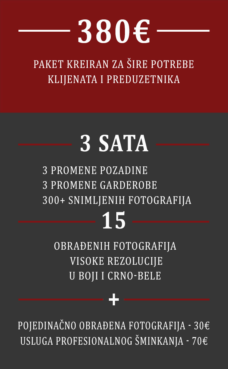 Jedan od naših proizvoda koji ima najdužu tradiciju oblikovali smo i prilagodili samo za vas. Za one koji žele da ostave snažan profesionalni utisak, kvalitetni poslovni portreti su ključni. U toj oblasti mi nudimo više od drugih.